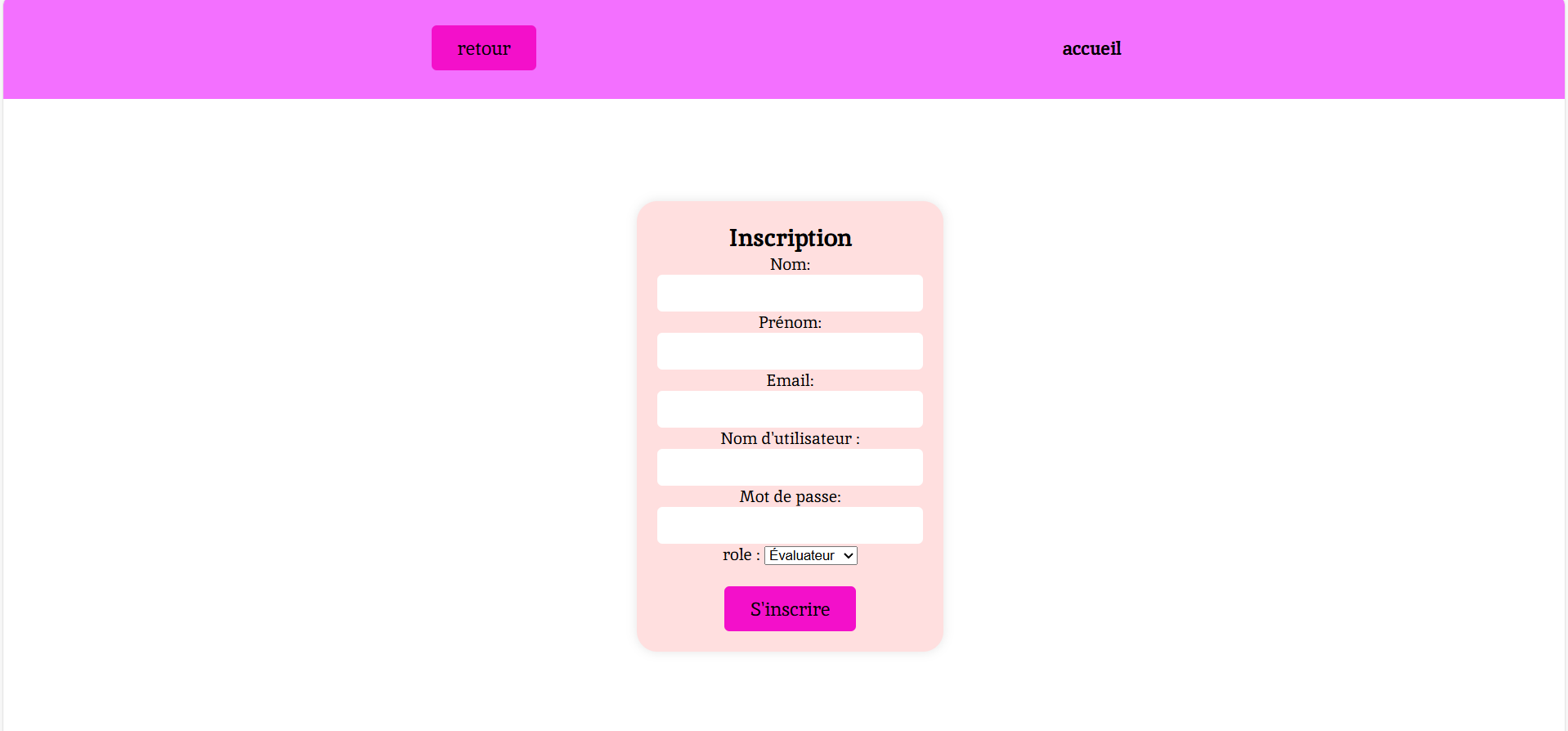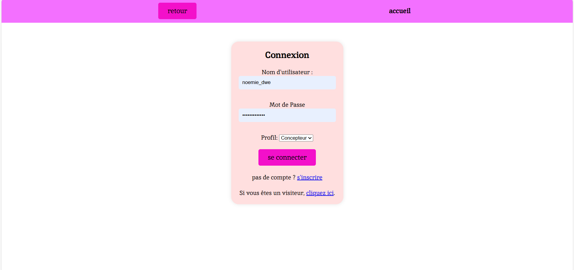 Le site repose sur une architecture comprenant un système de connexion et d’inscription, ainsi qu’une gestion des utilisateurs selon différents rôles. Trois types d’utilisateurs ont été définis : le concepteur, l’évaluateur et le visiteur. Chaque profil dispose de droits spécifiques, ce qui permet d’organiser l’accès aux fonctionnalités du site de manière structurée.